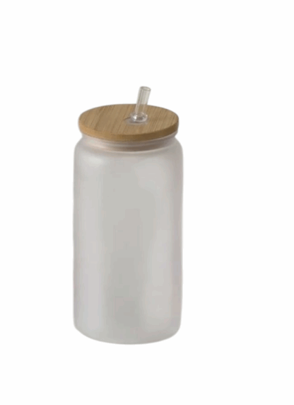 gobelet givré réutilisable en verre de 480mlavec son couvercle en bambou et paille incluse